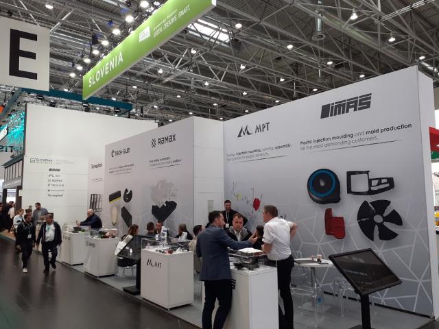 Slovenski razstavni prostor se je nahajal v hali 8B in je obsegal 48 m². Sodobno zasnovana skupinska stojnica je slovenskim razstavljavcem zagotovila visoko prepoznavnost ter omogočila učinkovito mreženje s poslovnimi partnerji iz vsega sveta. Na njem se je pod krovno blagovno znamko »Slovenia – Green. Creative. Smart« predstavilo šest podjetij: IMAS d. o. o., MPT d. o. o., RAMAX ENGINEERING d. o. o., TECH-GUM d. o. o., TEHNOPLAST POVŠE d. o. o. in TURNAPLAST d. o. o. S svojimi inovativnimi rešitvami in tehničnim znanjem so uspešno promovirala slovensko industrijo plastike, gume in naprednih materialov.