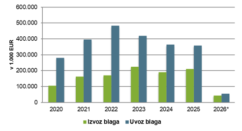 Opomba: (*) Podatki se nanašajo na obdobje jan-feb (posodobljeno april 2026).