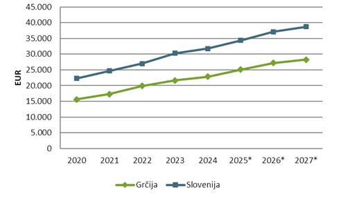 Primerjava gibanja BDP na prebivalca (grafični prikaz)