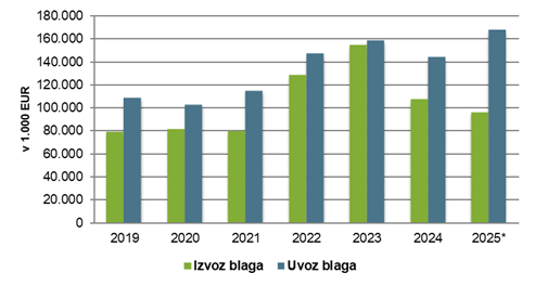 Skupno je blagovna menjava v letu 2025 dosegla 263 mio EUR.