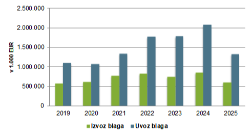 Opomba: (*) Podatki se nanašajo na obdobje jan-avg (posodobljeno oktober 2025).