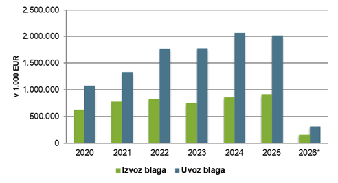 Opomba: (*) Podatki se nanašajo na obdobje jan-feb (posodobljeno april 2026).