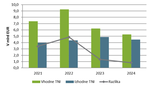 - Povprečna letna stopnja rasti vhodnih TNI od leta 2020 je znašala 4,6 %.