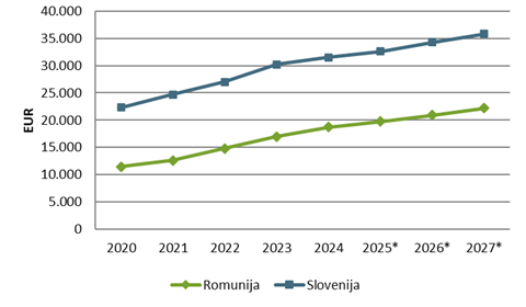 Vrednosti RON so preračunane v EUR po povprečnem letnem deviznem tečaju ECB za leto 2024.
