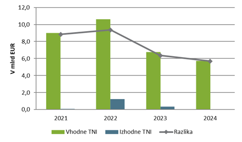 - Povprečna letna stopnja rasti vhodnih TNI od leta 2020 je znašala 4,4 %.