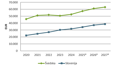 Vrednosti SEK so preračunane v EUR po povprečnem letnem deviznem tečaju ECB za leto 2024.