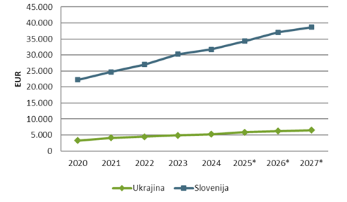 Vrednosti UAH so preračunane v EUR po povprečnem letnem deviznem tečaju ECB za leto 2024.
