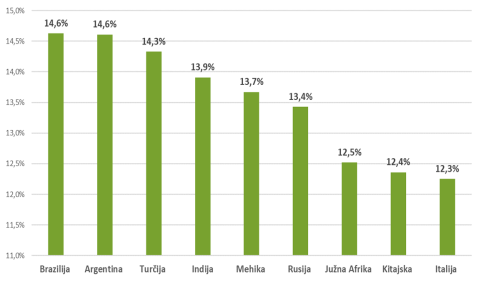 Južna Afrika spada med 10 držav, ki jim analitiki do leta 207 napovedujejo največjo stopnjo rasti.E-trgi z največjo napovedano stopnjo rasti v obdobju 2023-2027