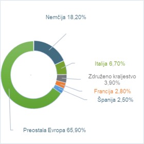 Geografska segmentacija evropske lesne industrije , v % za 2024