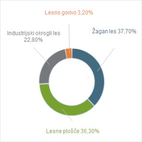 Segmentacija evropske lesne industrije glede na kategorijo, v % vrednosti za leto 2024