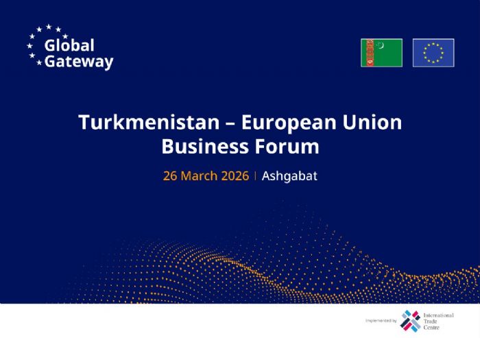 EU delegacija v Ašgabadu skupaj z Vlado Turkmenistana pripravlja v sodelovanju z Mednarodnim trgovinskim centrom (ITC) poslovni forum Turkmenistana in Evropske unije z naslovom "Nova obzorja za povezljivost in trajno rast". Forum bo potekal 26. marca 2026 v hotelu Yyldyz v Ašgabatu v Turkmenistanu.