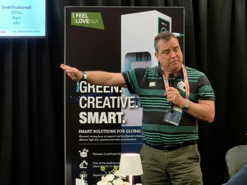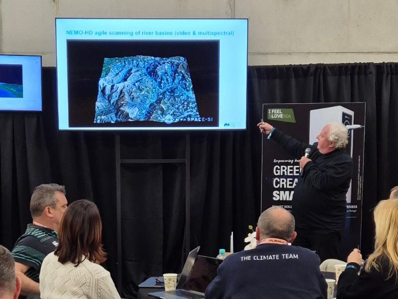 Projekte so predstavili Tomaž Rodič iz Centra odličnosti Vesolje-SI, Anže Žnidaršič in Vid Jakopin iz podjetja Flycom Technologies ter Grega Milčinski iz podjetja Sinergise. Krištof Oštir s Fakultete za gradbeništvo in geodezijo je predstavil projekt Geo Slovenija.