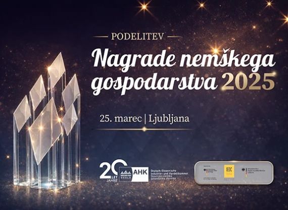 Slovensko-nemška gospodarska zbornica vas vabi na svečano podelitev Nagrade nemškega gospodarstva 2025/26, bilateralne inovacijske nagrade, s katero že od leta 2014 spodbuja odličnost, inovativnost in dobre prakse v gospodarstvu.