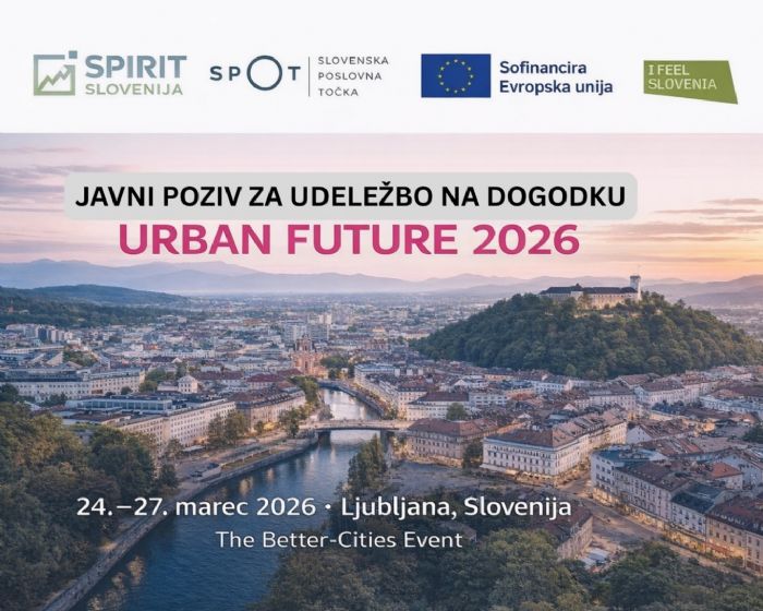 SPIRIT Slovenija v okviru partnerstva z mednarodno konferenco Urban Future 2026 (v nadaljevanju: UF26) vabi inovativna slovenska podjetja, da se prijavijo k sodelovanju v slovenski podjetniški delegaciji, ki bo potekala od 24. do 27. marca 2026 na Gospodarskem razstavišču v Ljubljani.