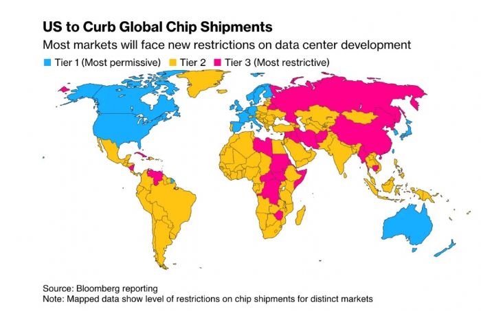 Ameriška vlada je sprejela nova pravila o izvozu in prodaji čipov in tehnologije za umetno inteligenco, ki svet delijo v tri kategorije držav in predpisujejo nove kvote.