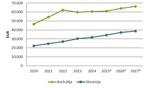 Vrednosti AUD, ki so preračunane v EUR po povprečnem letnem deviznem tečaju ECB za leto 2025.