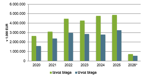 Opomba: (*) Podatki se nanašajo na obdobje jan-feb (posodobljeno april 2026).