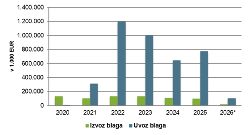 Blagovna menjava med Slovenijo in Saudovo Arabijo 2020 – 2026 (grafični prikaz)