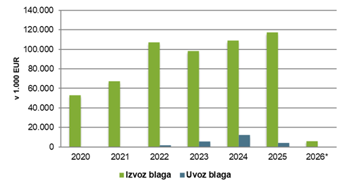 Skupno je blagovna menjava v letu 2025 dosegla 121 mio EUR.