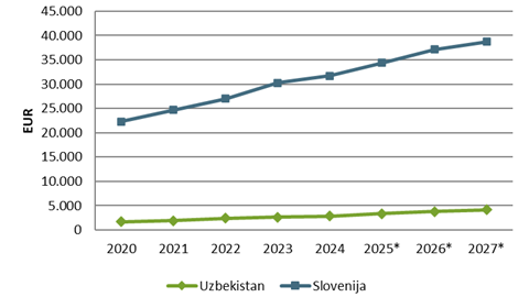 Primerjava gibanja BDP na prebivalca (grafični prikaz)