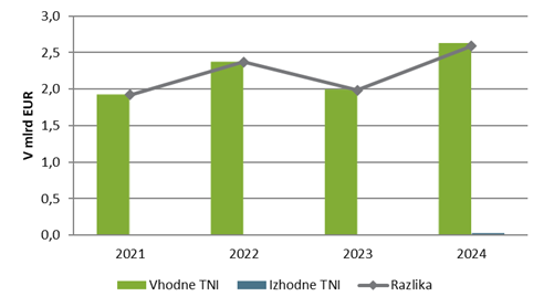 - Povprečna letna stopnja rasti vhodnih TNI od leta 2020 je znašala 13,7 %.
