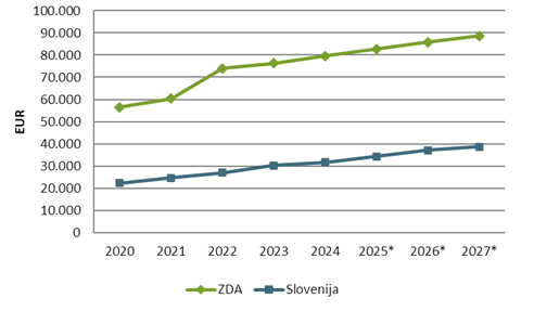 Primerjava gibanja BDP na prebivalca (grafični prikaz)