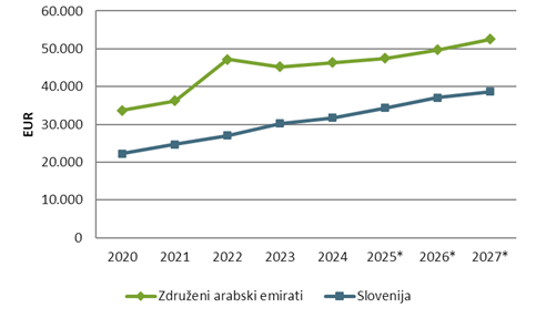 Primerjava gibanja BDP na prebivalca (grafični prikaz)