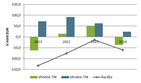 - Povprečna letna stopnja rasti vhodnih TNI od leta 2020 je znašala 6,6 %.